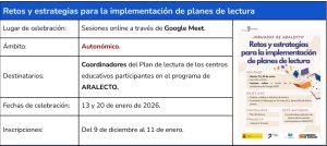 INSCRIPCIÓN: Desde el 10 de diciembre hasta el 18 de enero incluido. PONENTES: Marta Ligioiz, Paloma Rocafull, Gemma Sánchez, Héctor Benítez, Alejando Lolumo y Samuel Rollón. Número de horas: 12 HORAS: 10 presenciales y 2 no presenciales. LUGAR DE CELEBRACIÓN: Centro de Profesorado Juan de Lanuza. Calle del Buen Pastor 4. ZARAGOZA DÍAS DE CELEBRACIÓN: …